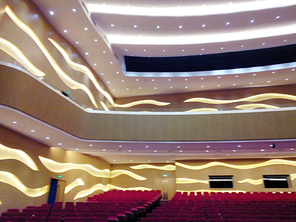 增城市文化会议中心是大型公共服务配套设施,是增城市文化交流的重要平台。为提升增城城市形象,丰富增城城市品质,充分展示增城丰厚的历史文化底蕴,进一步发扬增城文化软实力,增城市文化会议中心决定采用目前最为先进的双曲面弧形板工艺。 这一项目除了规模大,施工工艺复杂之外,最与众不同的地方是其音效的设计。华泰辉公司项目技术负责人蔡春光介绍,剧院的观众席吊顶是双曲面弧形板的设计,这是增城文化艺术中心最具特色的技术,所谓双曲面弧形板,就是吊顶的水平方向和垂直方向都是弧形,设计施工会很复杂,但是可以提升音效,让下面的每个角落都能得到很好的视听享受。此外,艺术中心采用自然扩声的设计方式,确保在演员不用话筒的情况下,坐在最远角落的观众也能听清楚。 |